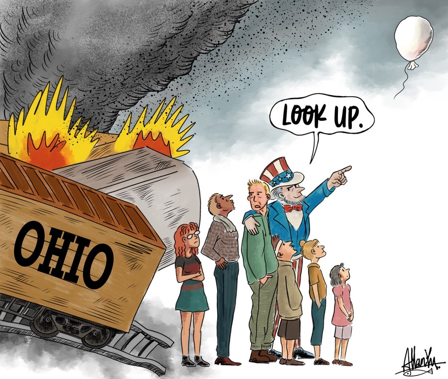 The best way to draw people's attention away from domestic fiasco like a chemical train derailment is to create an imaginary foreign enemy out of civilian balloons.■