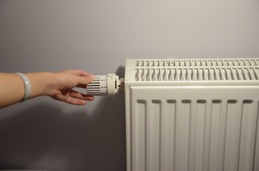 A resident adjusts the thermostat on a heater at her residence in Warsaw, Poland, Nov. 3, 2022. (Xinhua/Chen Chen)