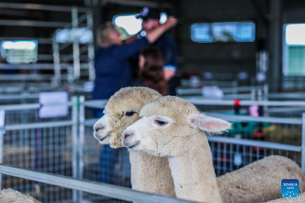 This photo taken on Feb. 24, 2023 shows alpacas at the Royal Canberra Show in the Exhibition Park in Canberra, Australia.