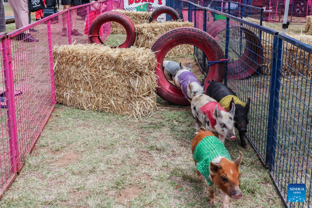 This photo taken on Feb. 24, 2023 shows piggies running at the Royal Canberra Show in the Exhibition Park in Canberra, Australia.