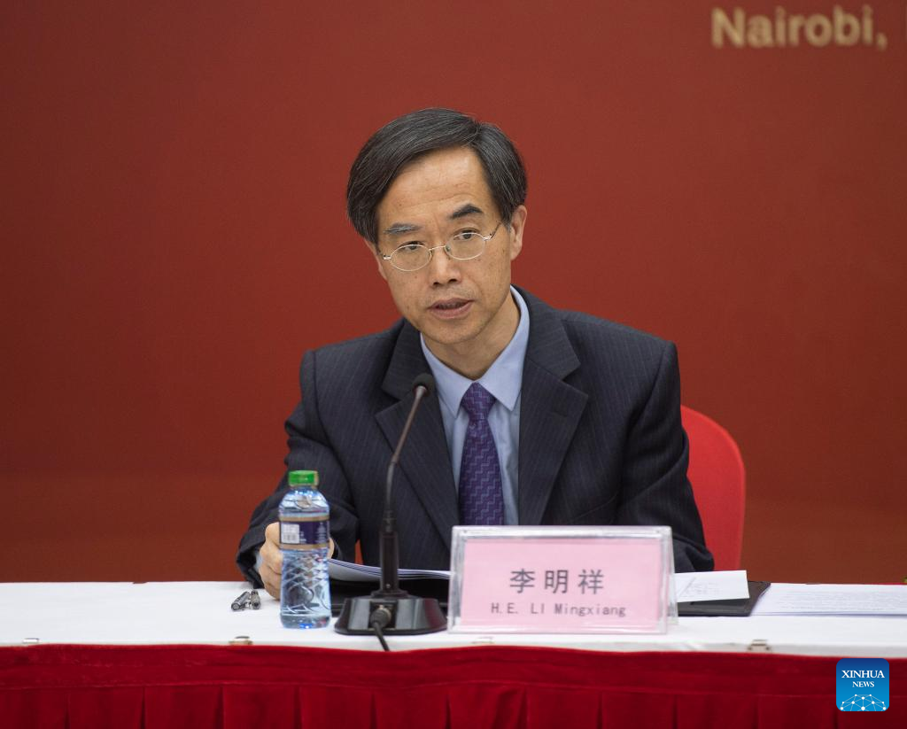 Li Mingxiang, deputy minister of the International Department of the Communist Party of China (CPC) Central Committee, makes a keynote speech during a symposium on the 20th CPC National Congress in Nairobi, Kenya, Feb. 23, 2023. At the invitation of Kenya's ruling United Democratic Alliance (UDA) party, a CPC delegation has visited Kenya and briefed the hosts on the guiding principles of the 20th CPC National Congress.