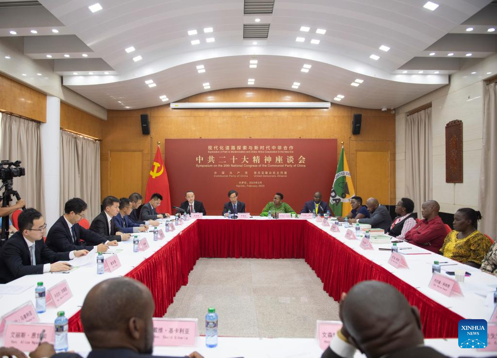 A symposium on the 20th National Congress of the Communist Party of China (CPC) is held in Nairobi, Kenya, Feb. 23, 2023. At the invitation of Kenya's ruling United Democratic Alliance (UDA) party, a CPC delegation has visited Kenya and briefed the hosts on the guiding principles of the 20th CPC National Congress.