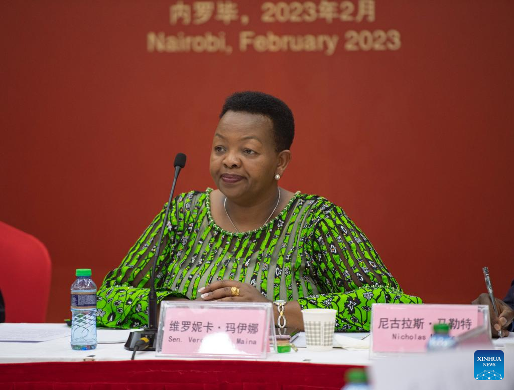 Kenya's ruling United Democratic Alliance (UDA) party Secretary General Veronica Maina attends a symposium on the 20th National Congress of the Communist Party of China (CPC) in Nairobi, Kenya, Feb. 23, 2023. At the invitation of Kenya's ruling United Democratic Alliance (UDA) party, a CPC delegation has visited Kenya and briefed the hosts on the guiding principles of the 20th CPC National Congress.