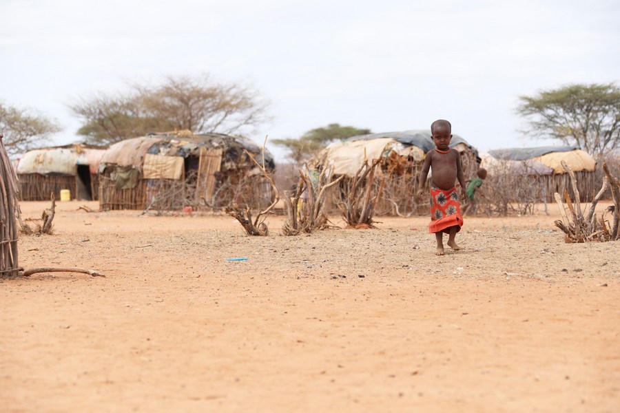 A child is seen in a drought-affected village in the town of Laisamis, Marsabit County, Kenya. (Xinhua/Dong Jianghui)