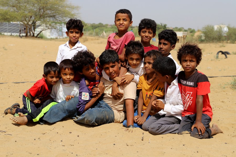 Schoolboys pose for a picture at a school in Abs District, Hajjah Province, northern Yemen, Feb. 23, 2023. (Photo by Mohammed Al-Wafi)