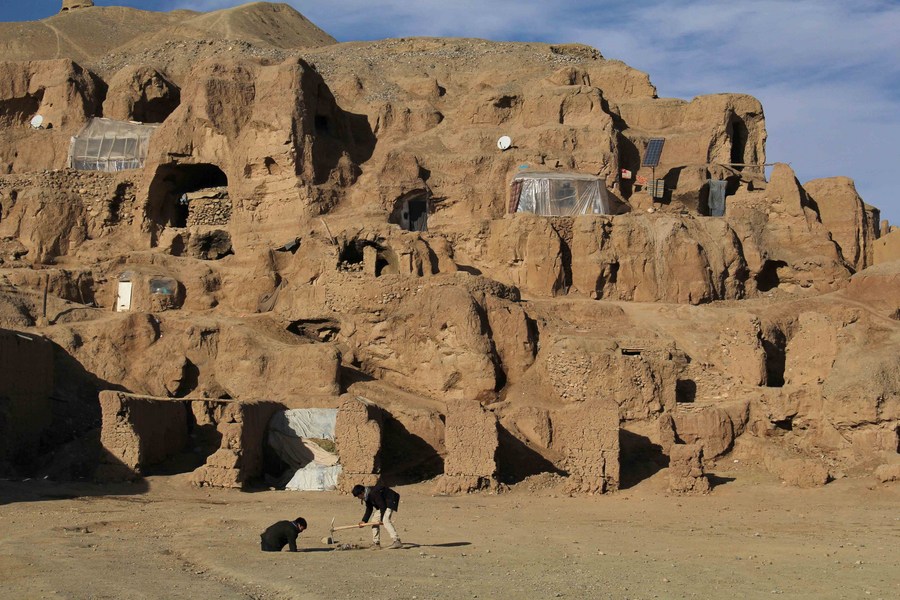 Afghan children play near their cave homes in Bamyan province, Afghanistan on Dec. 4, 2019. (Photo by Noor Azizi/Xinhua)