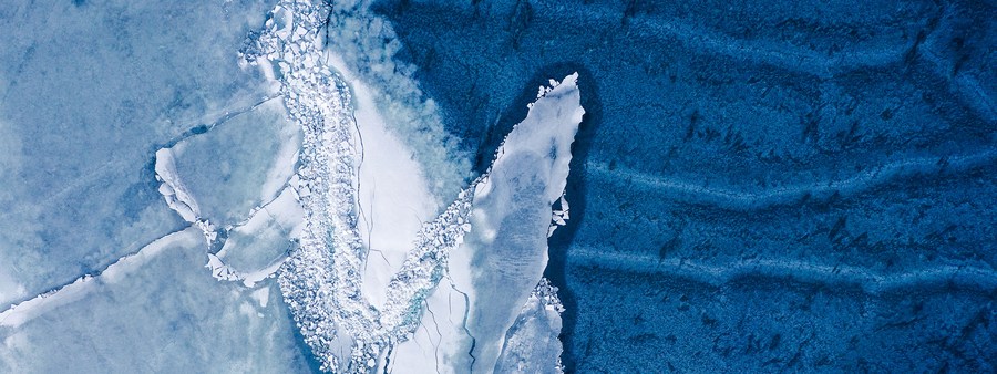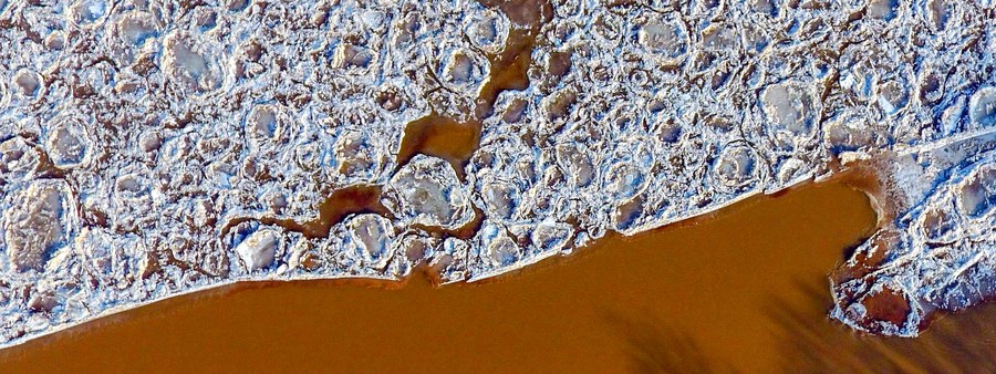 This aerial photo taken on Jan. 11, 2021 shows the frozen Yellow River in Jinan, capital of east China's Shandong Province. (Xinhua/Zhu Zheng)