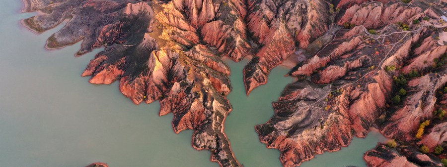 This aerial photo taken on Oct. 16, 2021 shows a view of the Mahuangliang Loess Geopark in Yulin City, northwest China's Shaanxi Province. (Xinhua/Zhu Xiang)