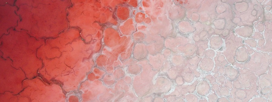 This aerial photo taken on July 13, 2022 shows a lake at the Badain Jaran Desert in north China's Inner Mongolia Autonomous Region. (Xinhua/Bei He)