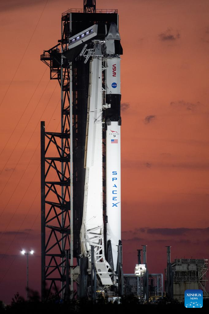 This photo taken on Feb. 27, 2023 shows a SpaceX Falcon 9 rocket and the Dragon spacecraft at NASA's Kennedy Space Center in Florida, the United States. NASA and SpaceX are now targeting Thursday, March 2, for next available Crew-6 launch attempt after the original launch attempt was scrubbed early Monday. The launch of the Crew-6 mission to the International Space Station was originally scheduled at 1:45 a.m. Monday Eastern Time from Launch Complex 39A at the Kennedy Space Center in Florida. But the launch was called off due to a ground systems issue. (NASA/Handout via Xinhua)