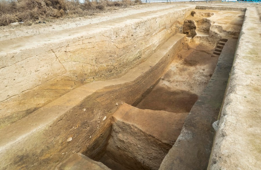 This photo taken on Feb. 28, 2023 shows a defensive trench discovered at the Suyang relics site in Yiyang County of Luoyang City, central China's Henan Province. (Photo by Dong Gefei/Xinhua)