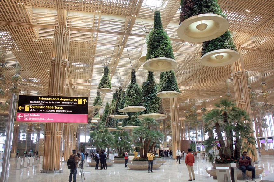 This photo shows a view of the newly-inaugurated Terminal 2 of Kempegowda International Airport in Bangalore, India, on Nov. 12, 2022. (Str/Xinhua)