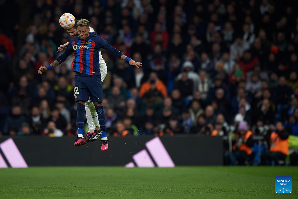 MADRID, March 2 (Xinhua) -- FC Barcelona produced a rock-solid and very untypical defensive display to beat Real Madrid 1-0 in the Santiago Bernabeu Stadium in the first leg of their Copa del Rey semifinal.