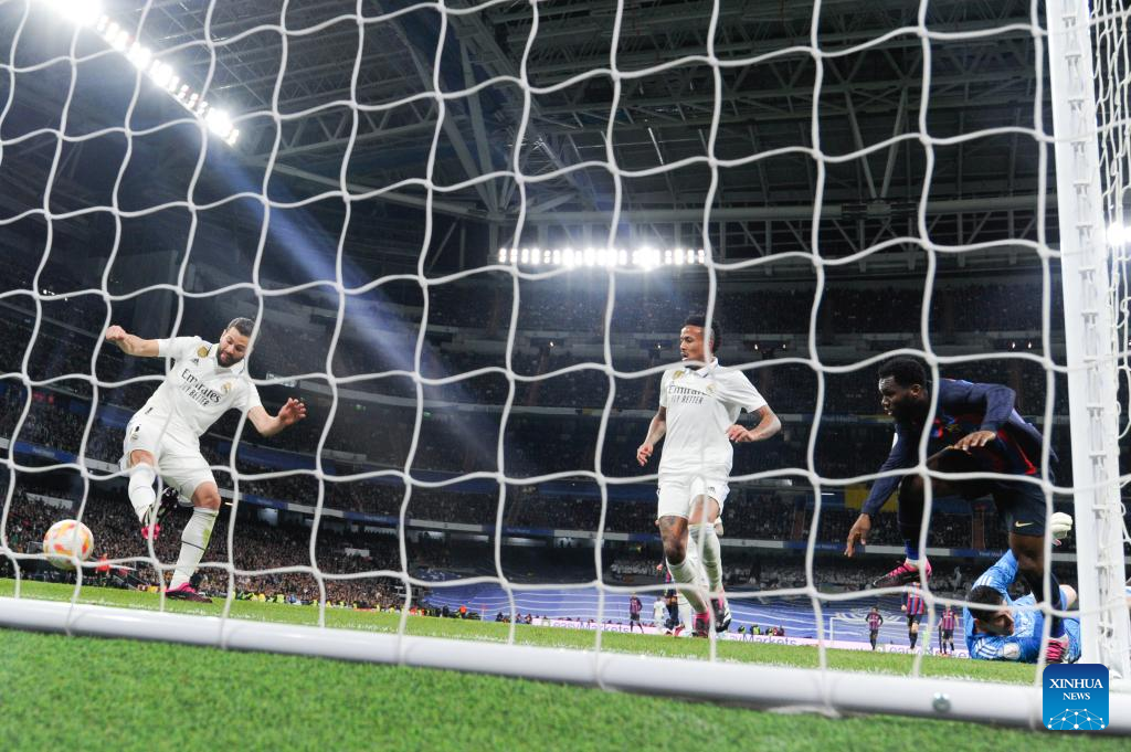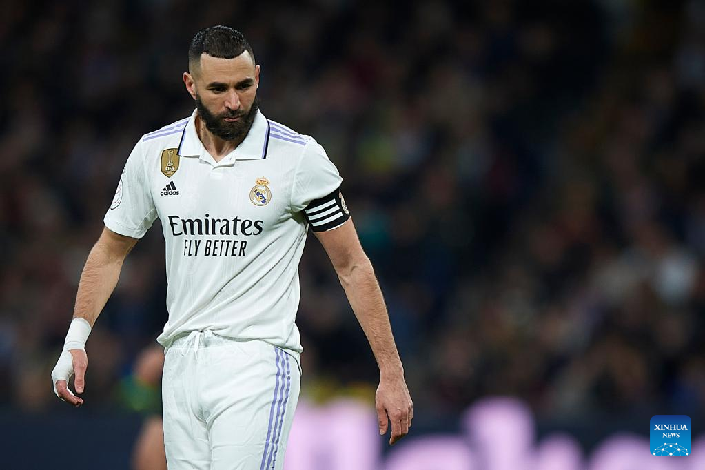 Karim Benzema of Real Madrid reacts during the Spain's Copa del Rey (King's Cup) semifinal first leg football match between Real Madrid and FC Barcelona in Madrid, Spain, March 2, 2023. (Photo by Pablo Morano/Xinhua)