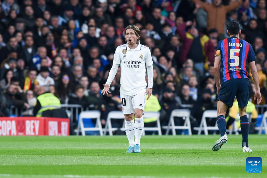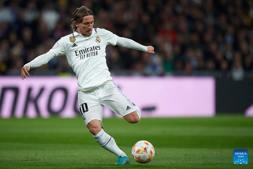 Luka Modric of Real Madrid competes during the Spain's Copa del Rey (King's Cup) semifinal first leg football match between Real Madrid and FC Barcelona in Madrid, Spain, March 2, 2023. (Photo by Pablo Morano/Xinhua)