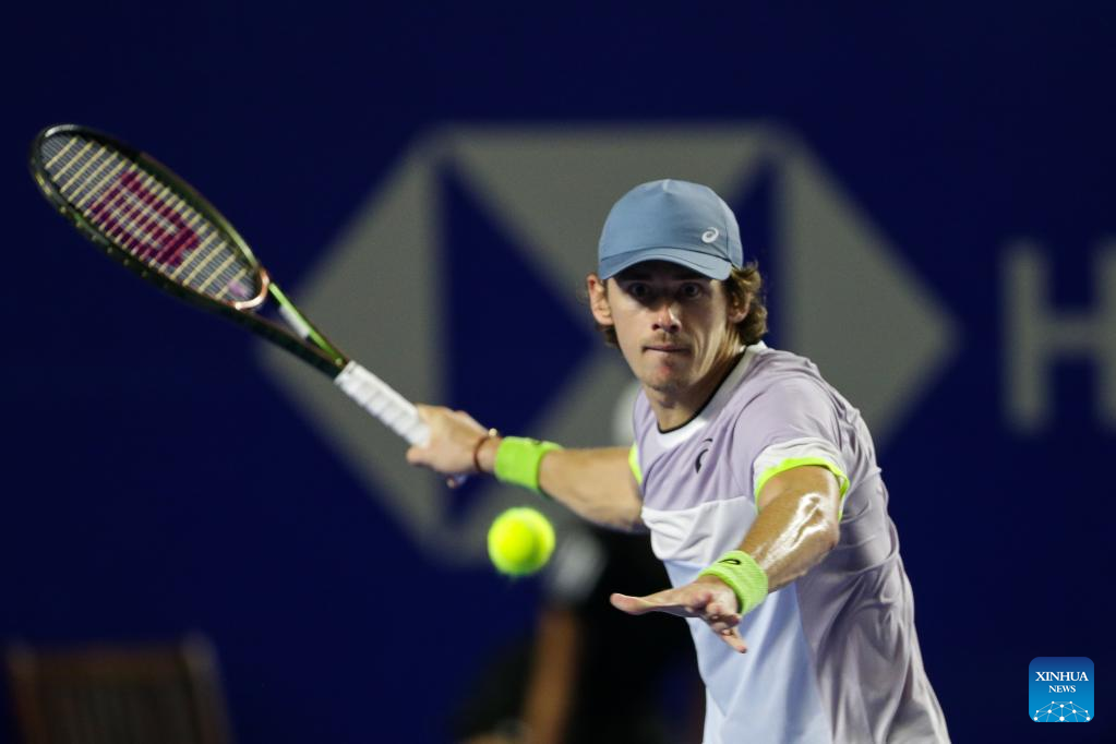 Alex de Minaur of Australia hits a return during the men's singles semifinal match between Holger Rune of Denmark and Alex de Minaur of Australia at the 2023 ATP Mexican Open tennis tournament in Acapulco, Mexico, March 4, 2023. (Photo by Francisco Canedo/Xinhua)