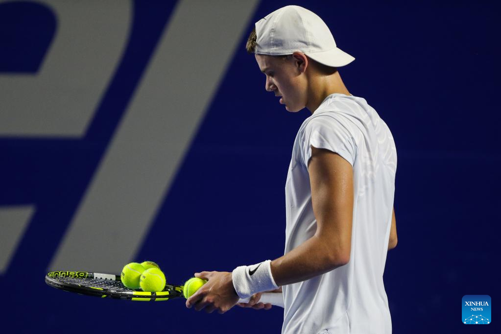 Holger Rune of Denmark hits a return during the men's singles semifinal match between Holger Rune of Denmark and Alex de Minaur of Australia at the 2023 ATP Mexican Open tennis tournament in Acapulco, Mexico, March 4, 2023. (Photo by Francisco Canedo/Xinhua)