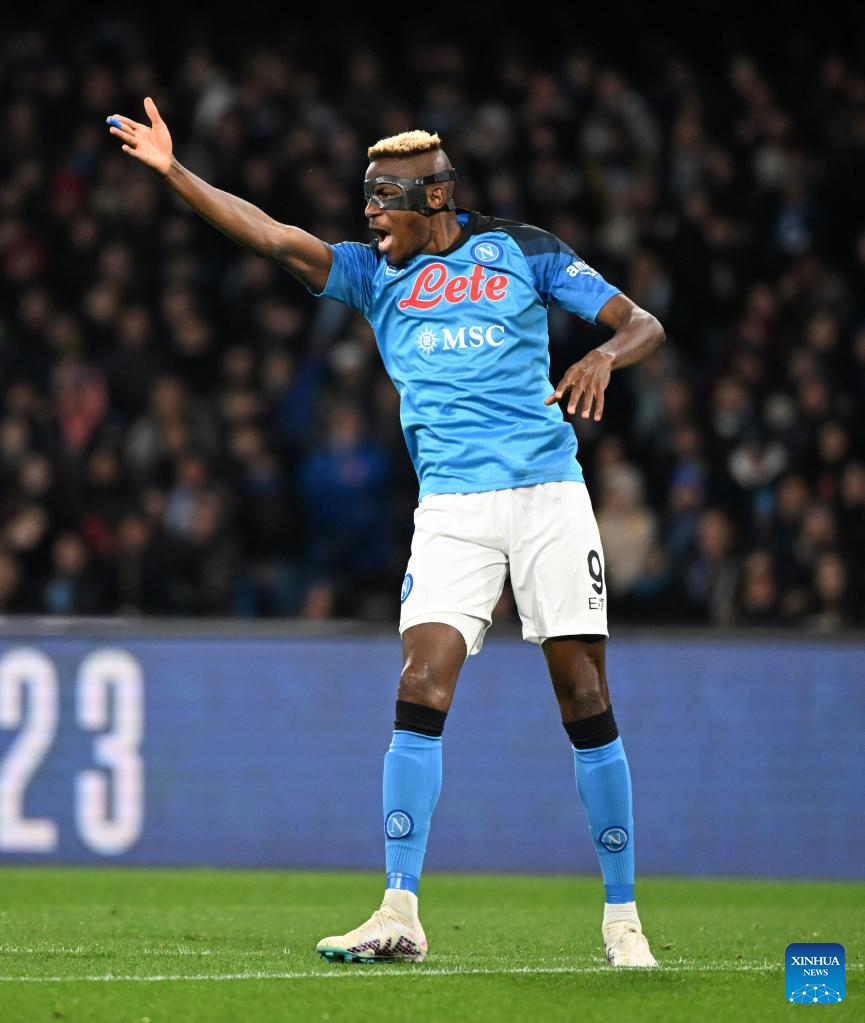 Napoli's Victor Osimhen gestures during a Serie A football match between Napoli and Lazio in Naples, Italy, March 3, 2023. (Photo by Alberto Lingria/Xinhua)