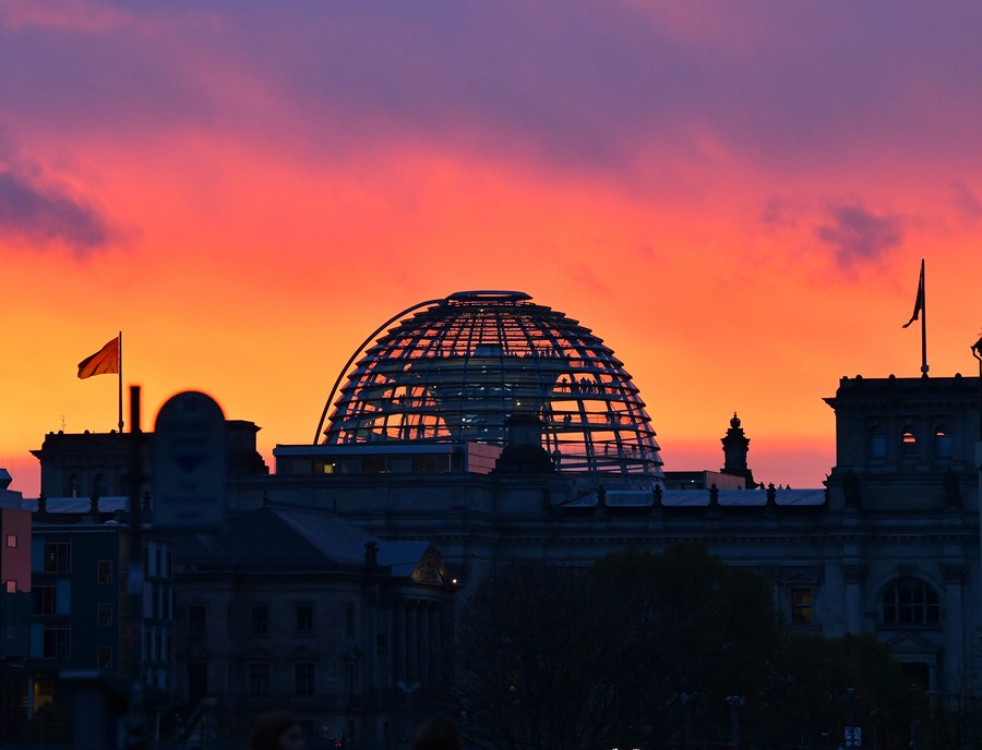 Photo taken on Nov. 4, 2022 shows the German Bundestag in the glow of the sunset in Berlin, capital of Germany. (Xinhua/Ren Pengfei)