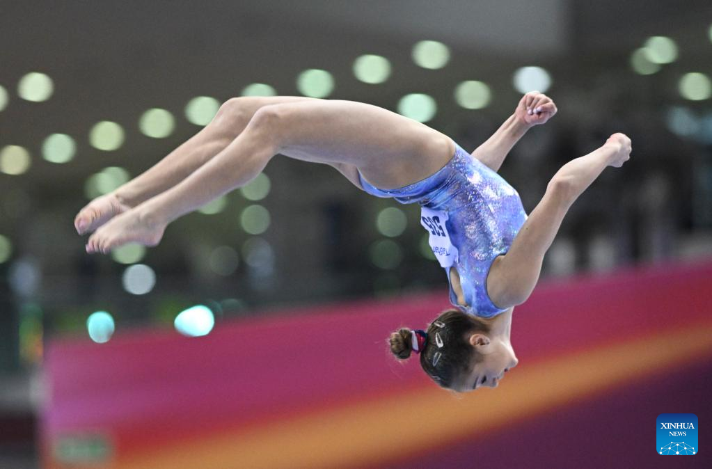Anna Lashchevska of Ukraine competes during the women's balance beam final at the 15th FIG Artistic Gymnastics World Cup in Doha, Qatar, March 4, 2023. (Photo by Nikku/Xinhua)