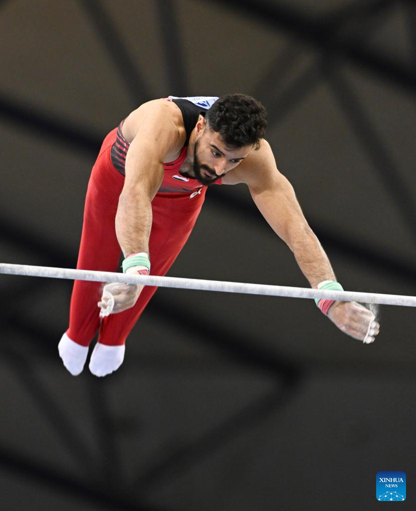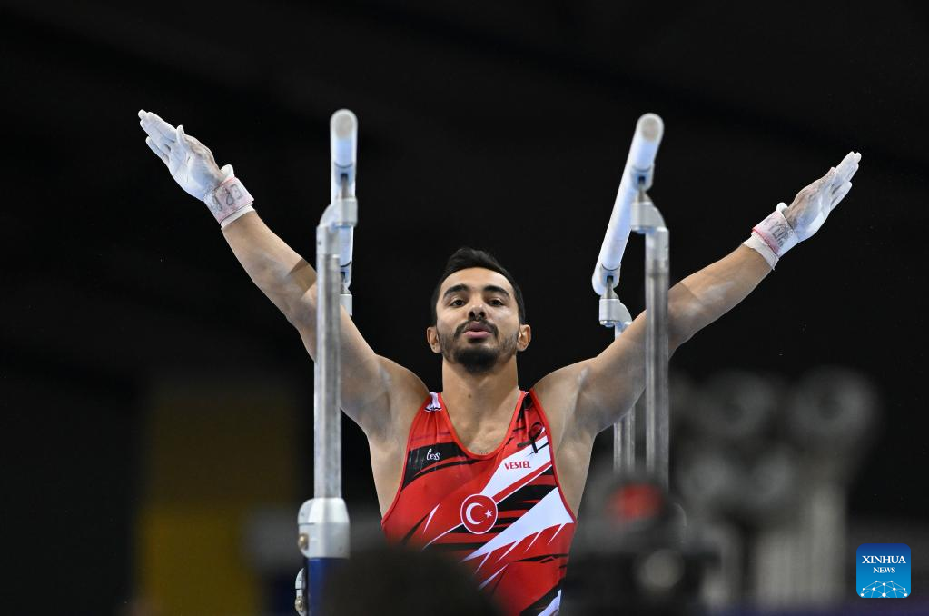 Ferhat Arican of Türkiye competes during the parallel bars final at the 15th FIG Artistic Gymnastics World Cup in Doha, Qatar, March 4, 2023. (Photo by Nikku/Xinhua)