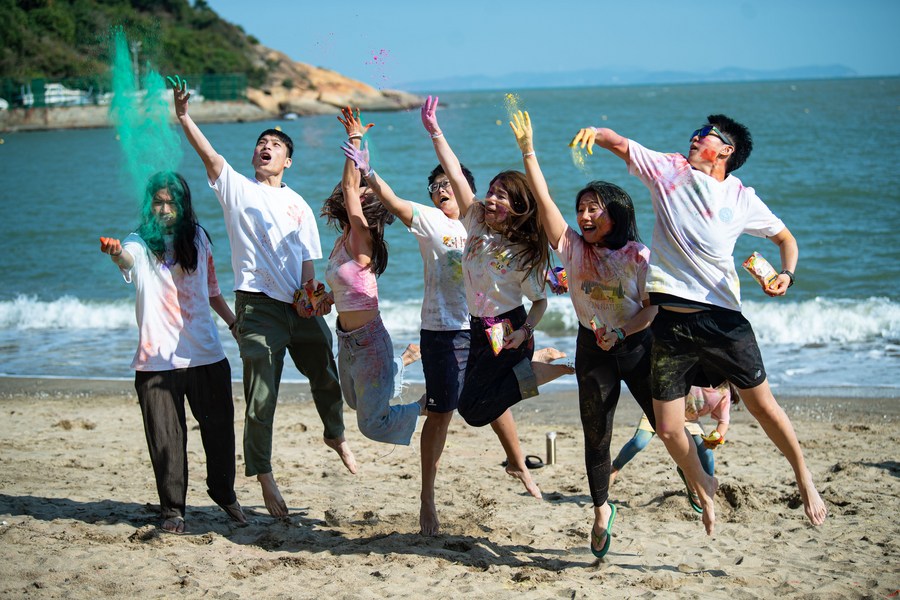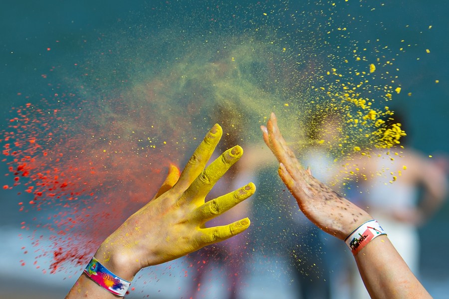 The festival is also celebrated in China's Macao, which is held by the Indian Culture Association Of Macao at Bamboo Bay Beach, where participants threw colored powder on each other to express their blessings and scattered the powder into the air to celebrate the coming of spring, love, and new life.