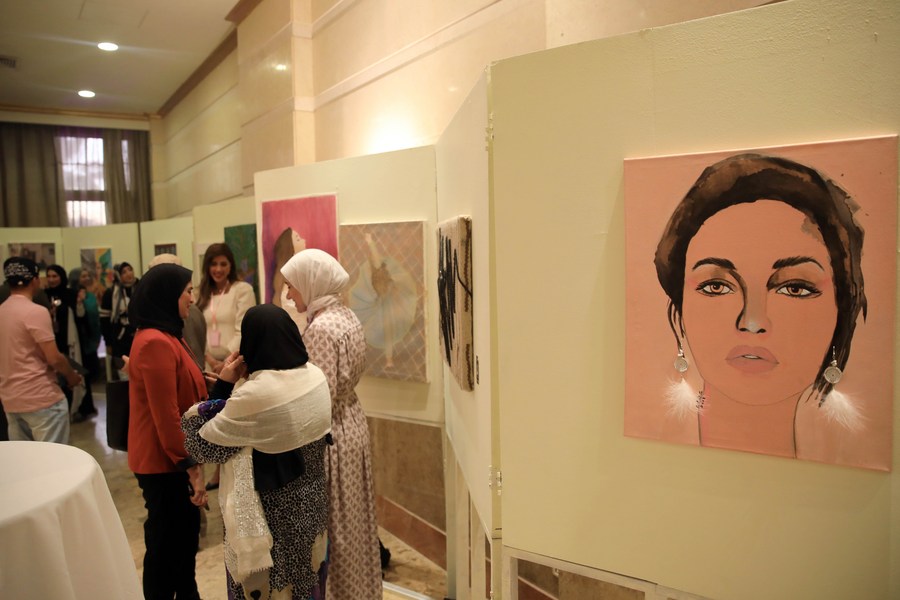 People visit an art gallery opened to mark the International Women's Day in Aswan, Egypt, on March 8, 2023. (Xinhua/Ahmed Gomaa)