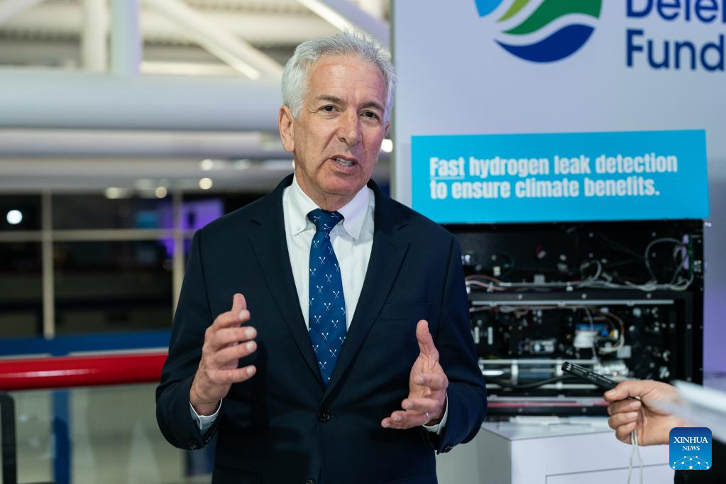 Fred Krupp, president of the U.S.-based non-profit group Environmental Defense Fund (EDF), speaks during an interview with Xinhua at CERAWeek in Houston, Texas, the United States, March 7, 2023. (Photo by Chen Chen/Xinhua)