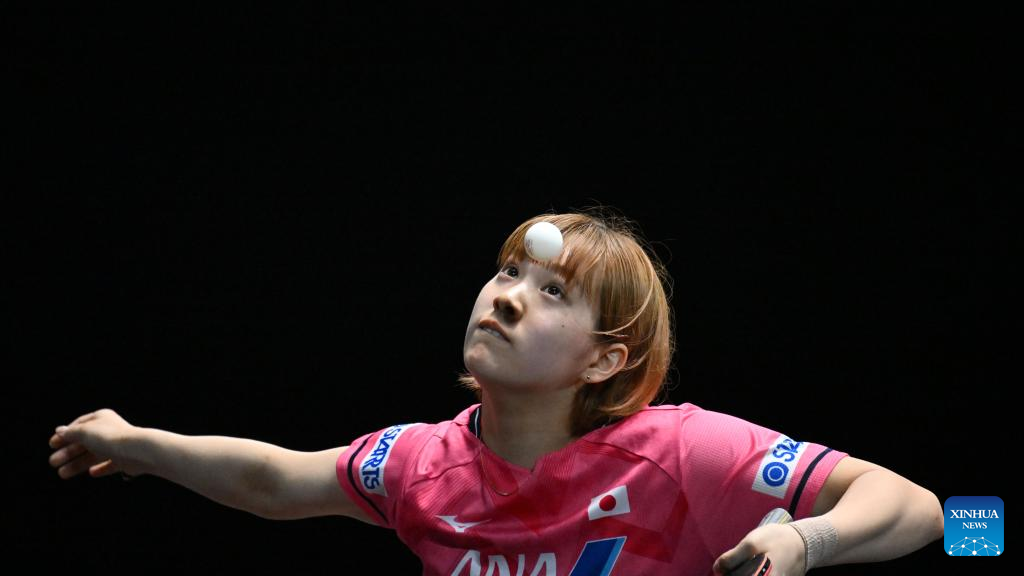Nagasaki Miyu of Japan serves during the women's singles round of 64 match against Chen Meng of China at World Table Tennis (WTT) Singapore Smash in Singapore on March 11, 2023. (Photo by Then Chih Wey/Xinhua)
