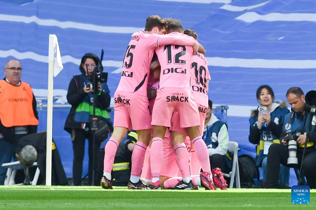 Espanyol's players celebrate a goal during a La Liga Santander match between Real Madrid and RCD Espanyol in Santiago Bernabeu Stadium, Madrid, Spain, on March 11, 2023. (Photo by Gustavo Valiente/Xinhua)