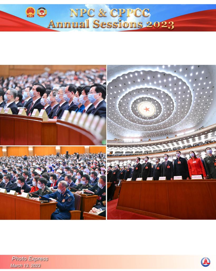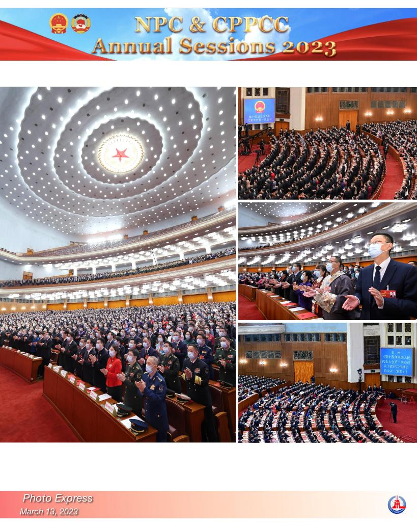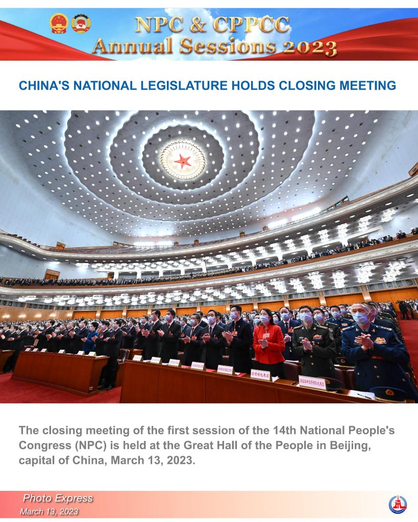 BEIJING, March 13 (Xinhua) -- The 14th National People's Congress, China's national legislature, held the closing meeting of its first session Monday morning in Beijing.