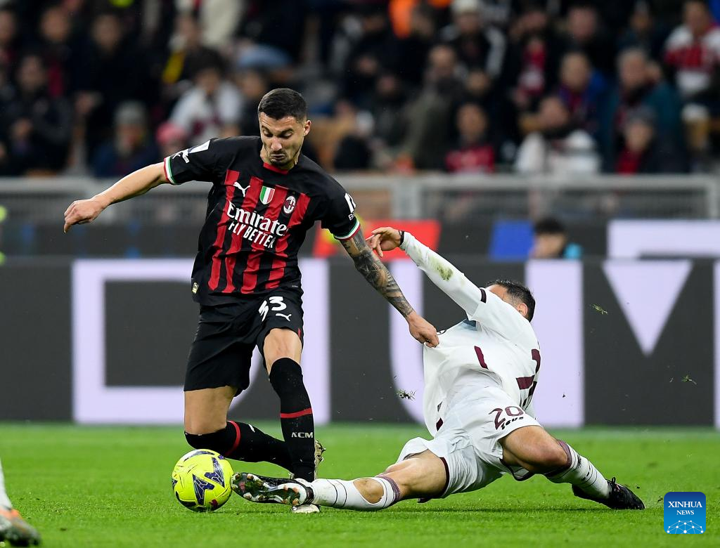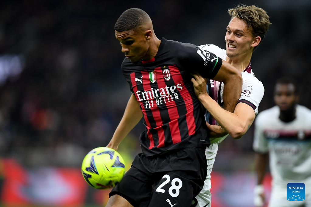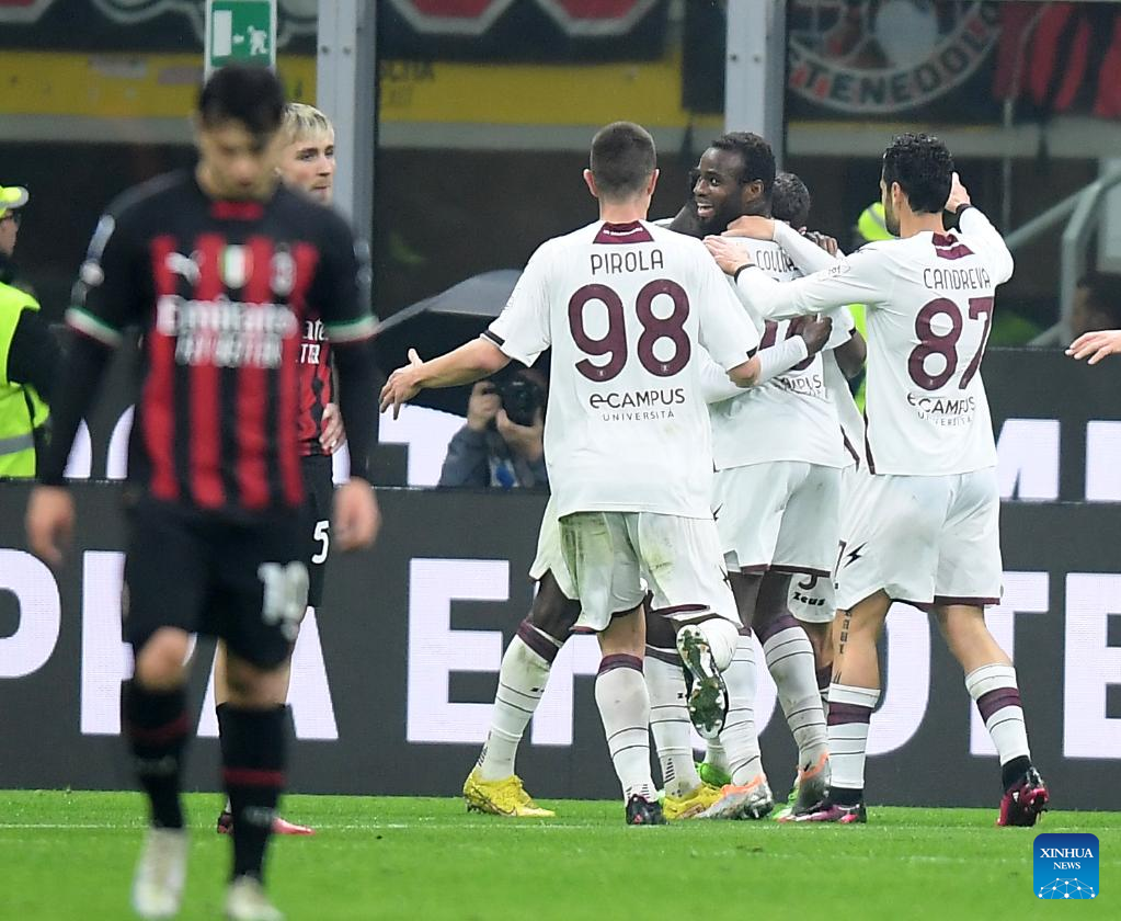 ROME, March 13 (Xinhua) -- AC Milan were rusty at San Siro as they managed 24 attempts but had to settle for a 1-1 draw with Salernitana in Serie A on Monday.