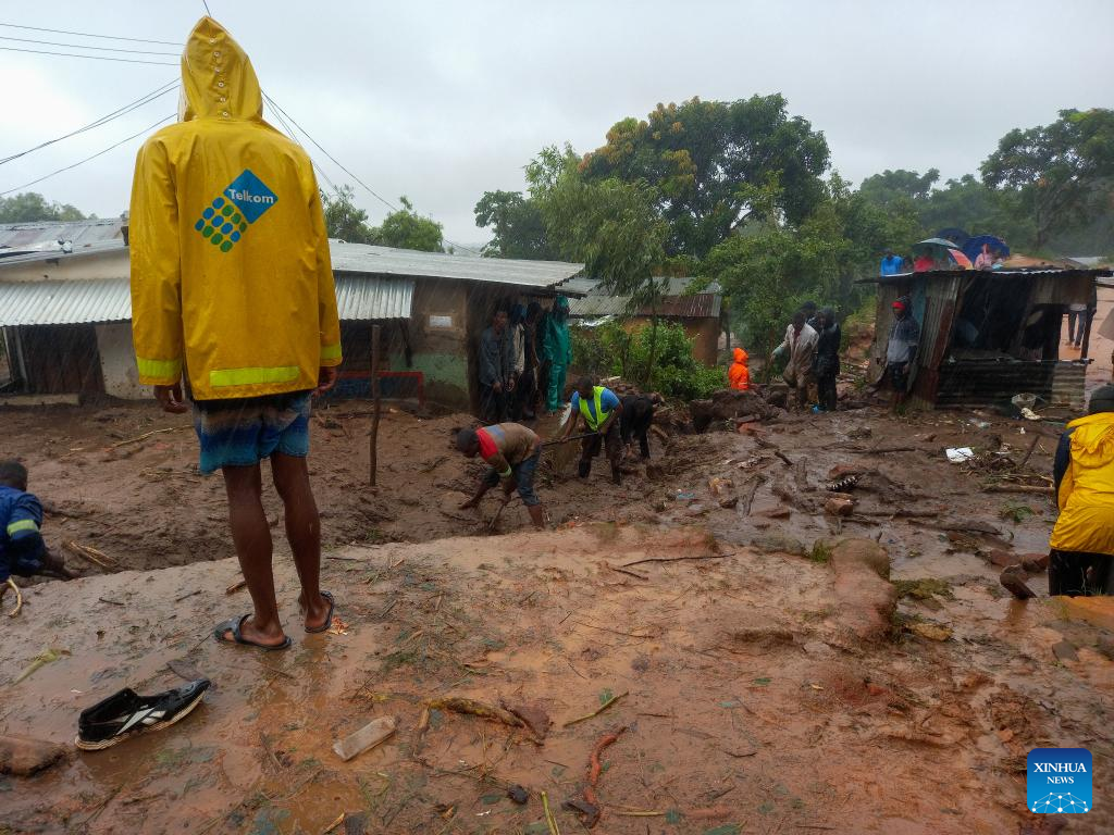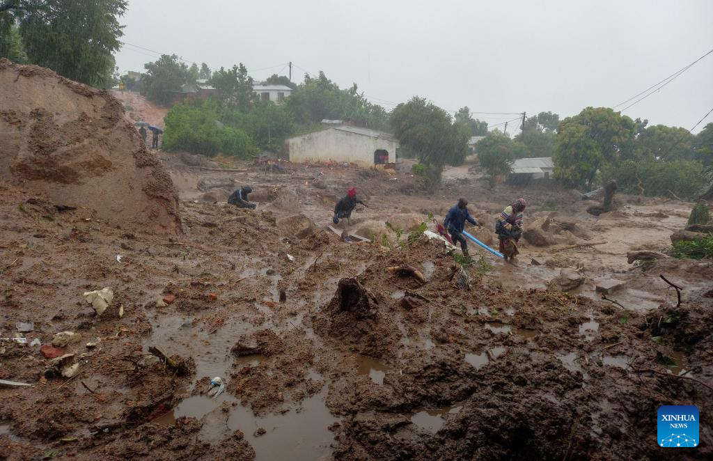 Rescuers clear the mud in Chilobwe, Blantyre, Malawi, on March 13, 2023. The death toll from Tropical Cyclone Freddy in Malawi reached 99 Monday evening with 85 deaths recorded in the commercial city of Blantyre alone, authorities have confirmed. (Photo by Joseph Mizere/Xinhua)