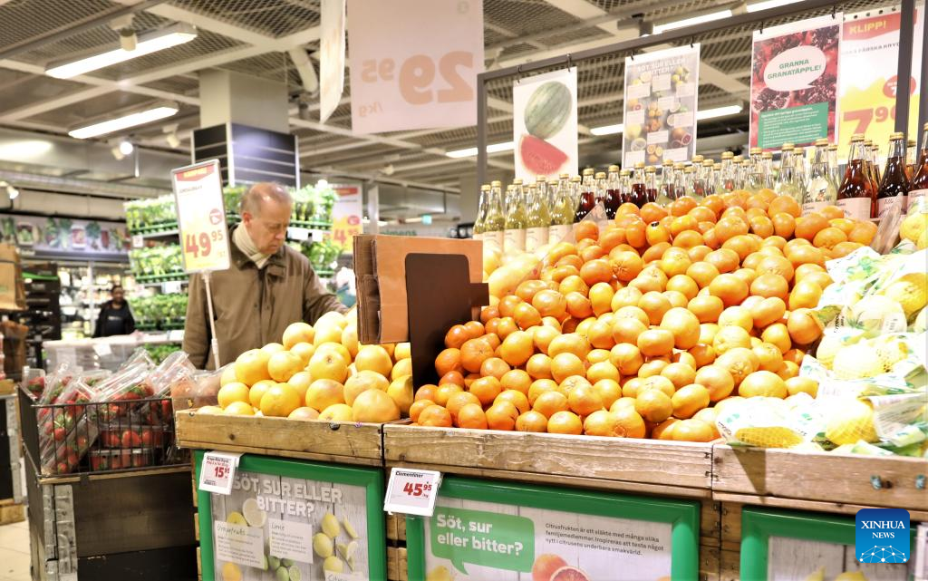 A customer shops for groceries at a supermarket in central Stockholm, Sweden, on March 15, 2023. Food prices in Sweden surged over 20 percent for the past 12 months, registering the highest increase in over seven decades, Statistics Sweden said on Wednesday. (Photo by Fang Ming/Xinhua)