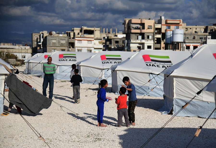 Children from an earthquake-stricken area are pictured at a shelter in the city of Jableh, Latakia province, Syria, March 9, 2023. (Photo by Ammar Safarjalani/Xinhua)