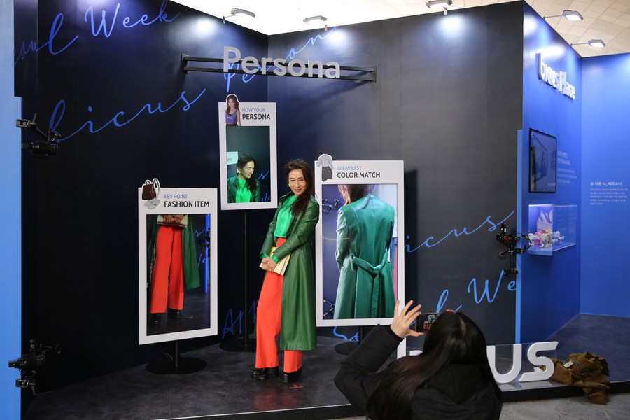 A visitor poses to have her own 3D avatar created at the 2023 Fall/Winter Seoul Fashion Week in Seoul, South Korea on March 15, 2023. (Xinhua/Wang Yiliang)