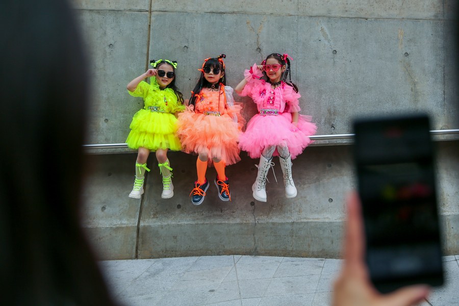 Children pose for photos during the 2023 Fall/Winter Seoul Fashion Week in Seoul, South Korea on March 15, 2023. (Xinhua/Wang Yiliang) ■
