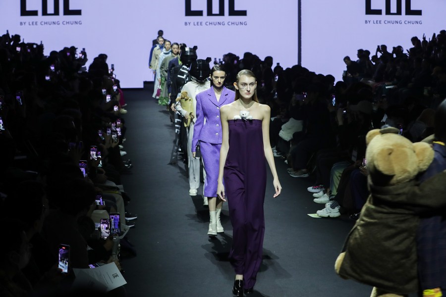 Models present creations at the 2023 Fall/Winter Seoul Fashion Week in Seoul, South Korea on March 16, 2023. (Xinhua/Wang Yiliang)