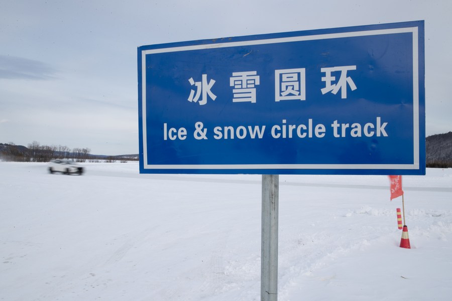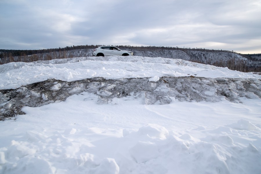 A vehicle undergoes a cold resistance test at a test base in Mohe, northeast China's Heilongjiang Province, March 17, 2023. (Xinhua/Zhang Tao)