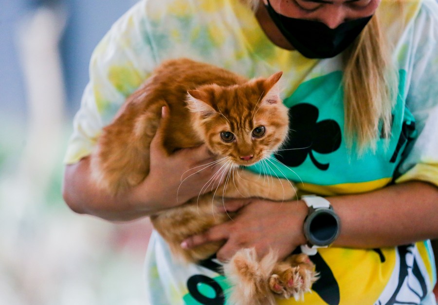 A pet cat receives a free rabies vaccine in Quezon City, the Philippines, during the country's national rabies awareness month, March 20, 2023. (Xinhua/Rouelle Umali)