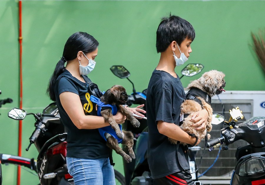 People take their pet dogs to receive a free rabies vaccination during the national rabies awareness month in Quezon City, the Philippines, March 20, 2023. (Xinhua/Rouelle Umali)