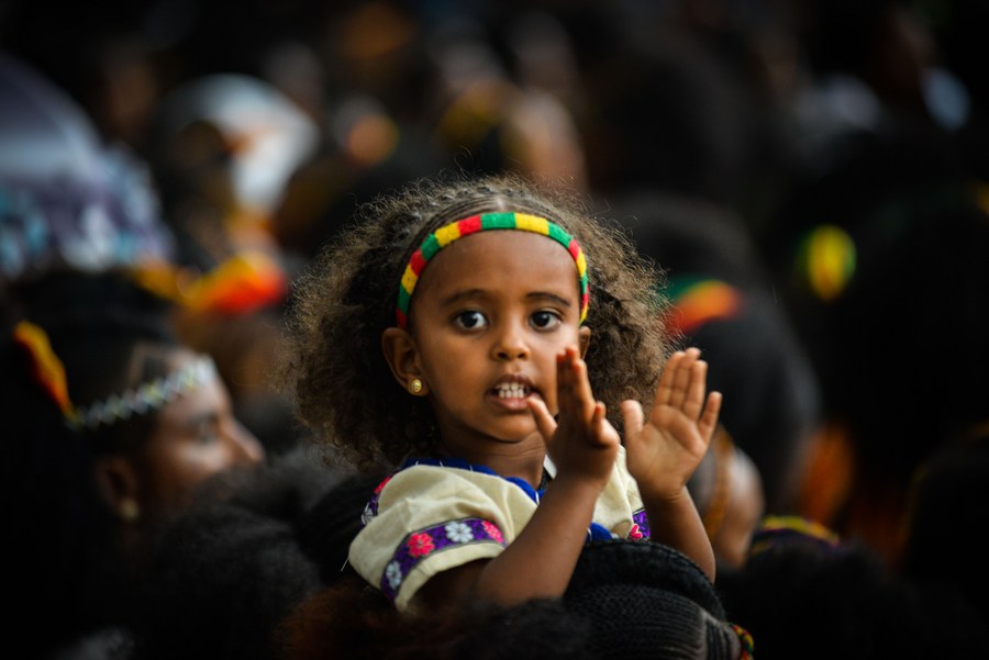 The file photo shows a girl taking part in the annual "Ashenda" festival in Mekelle town, Tigray, northern Ethiopia, on Aug. 22, 2017. (Xinhua/Michael Tewelde)