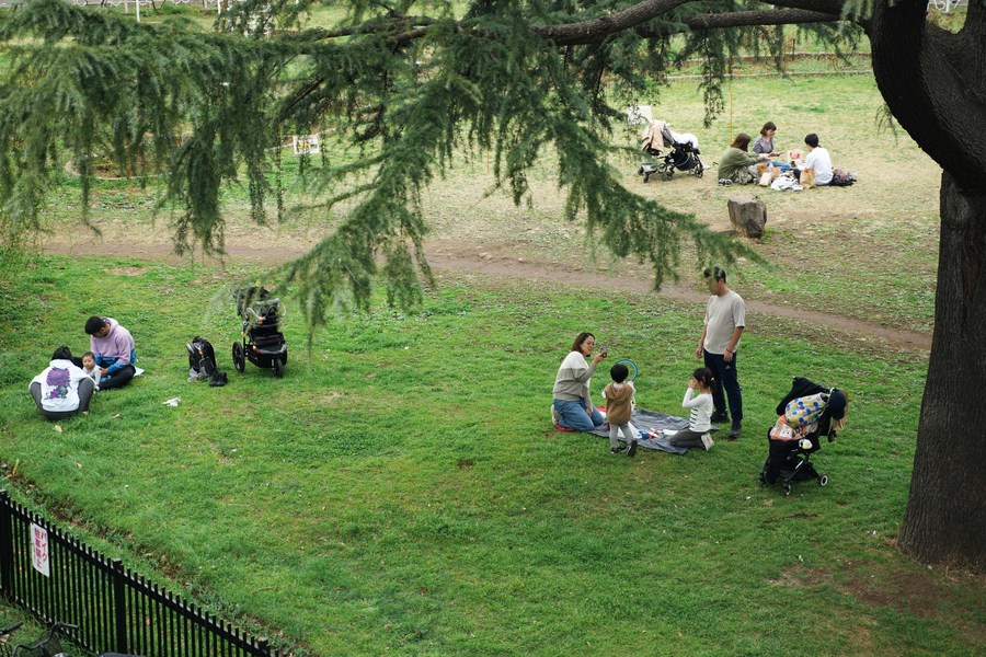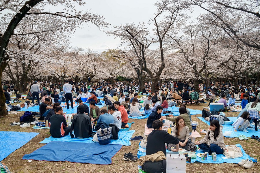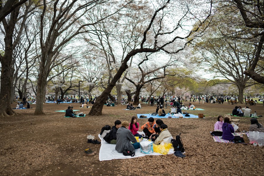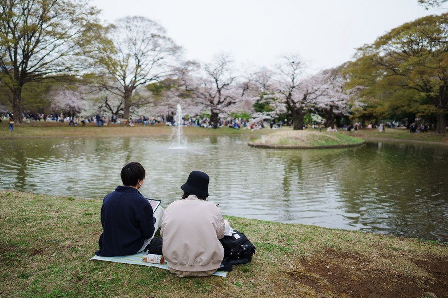 Visitors have picnics on the day of the spring equinox at Yoyogi Park in Tokyo, Japan, March 21, 2023. (Xinhua/Zhang Xiaoyu)