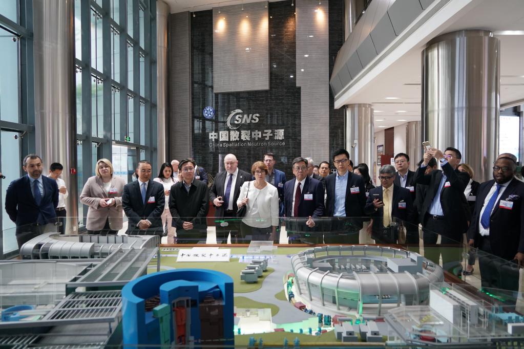A delegation of foreign consuls-general and business leaders in Hong Kong visit China Spallation Neutron Source (CSNS) in Dongguan, south China's Guangdong Province, on March 21, 2023. (Handout via Xinhua)