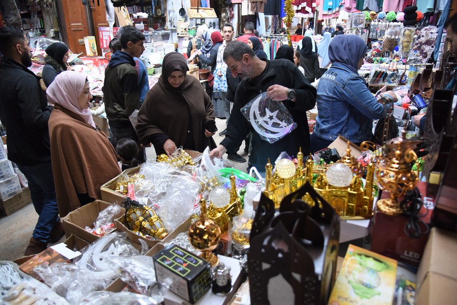 People shop at a market in preparation for the Muslim holy month of Ramadan in Tripoli, Lebanon on March 22, 2023. (Photo by Khaled Habashiti/Xinhua)