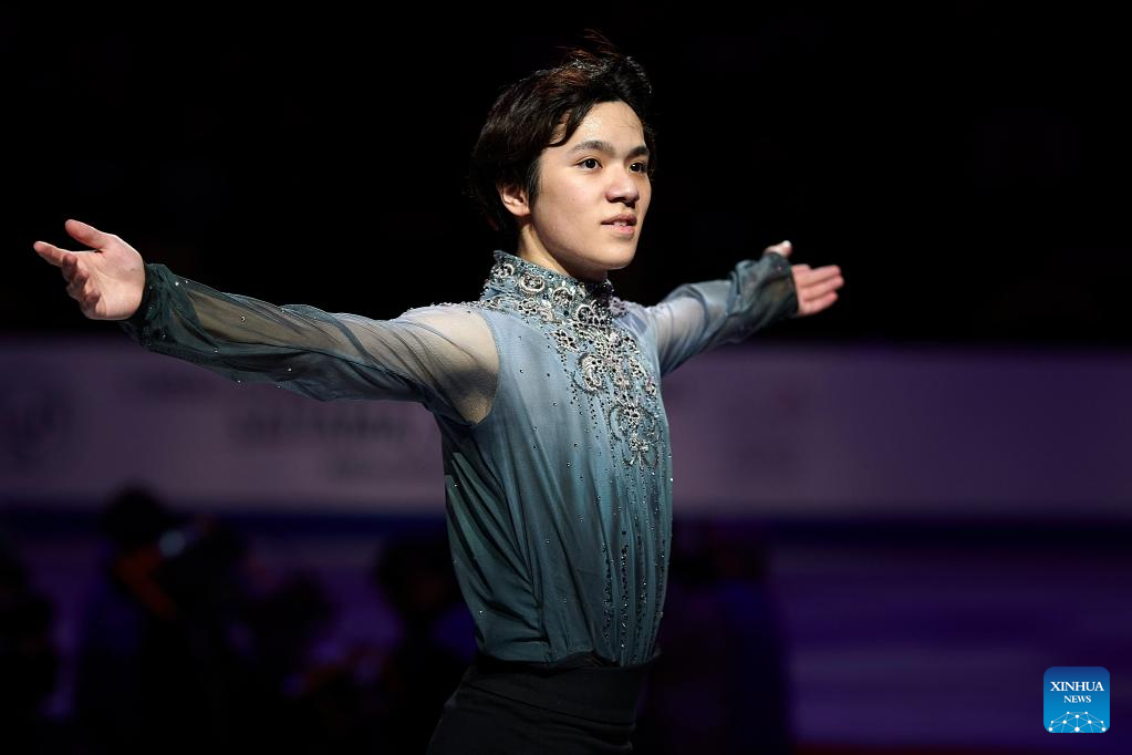 Uno Shoma of Japan performs during the men's free skating at the ISU World Figure Skating Championships at Saitama Super Arena in Saitama, Japan, March 25, 2023. (Photo by Pablo Morano/Xinhua)