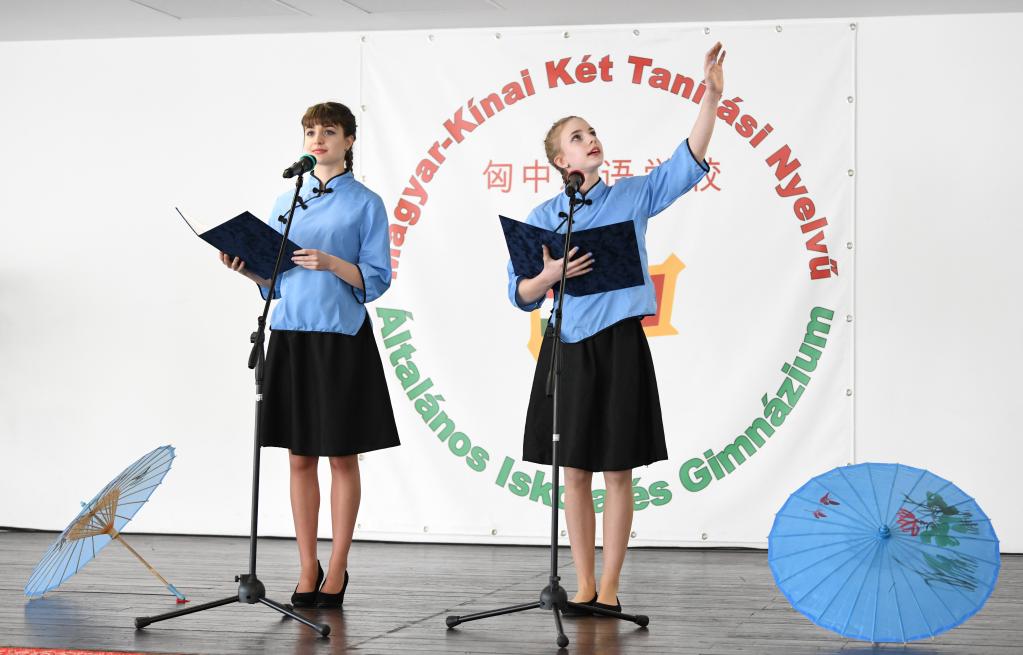 Students perform a poetry recitation in Chinese at Hungarian-Chinese bilingual school in Budapest, Hungary, Feb. 24, 2023. (Xinhua/Lian Yi)