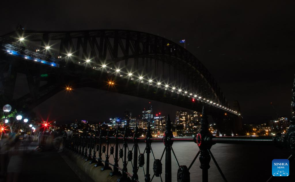 The Sydney Harbor Bridge goes dark during the Earth Hour event in Sydney, Australia, March 25, 2023.