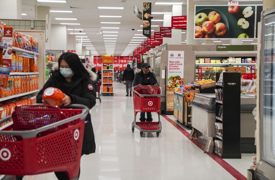 Customers shop at a Target store in New York, the United States, Dec. 10, 2021. (Xinhua/Wang Ying)