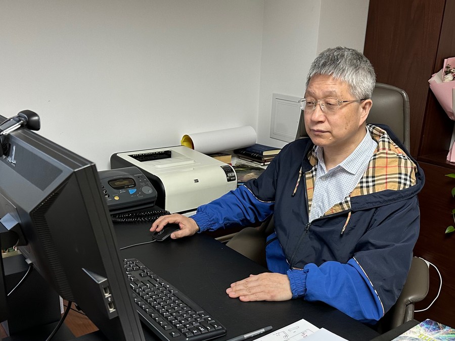Cheng Heping, a leading Chinese biomedical expert, is pictured at work in his office at Peking University in Beijing, capital of China, March 15, 2023. (Xinhua/Che Yunlong)